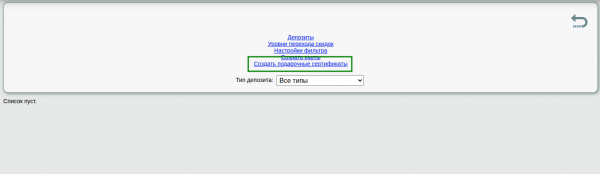 Для генерации, перейдите в раздел «Настройка»→«Депозиты» от логина системного администратора Нажмите ссылку «Создать подарочные сертификаты» Вы увидите перед собой форму для генерации сертификатов. В правой части формы есть механизм генерации, который позволит создать набор сертификатов в полуавтоматическом режиме Выберите тип генерации. Доступно два варианта:
