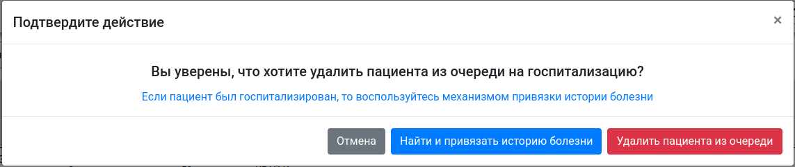 После этого, пациент исчезнет из очереди на госпитализацию.